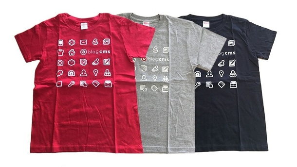 a-blog cmsのロゴやブランドアイコンが入った2015年バージョンのTシャツ(レッド)です。イベントなどでのユーザーアピールにご活用ください。